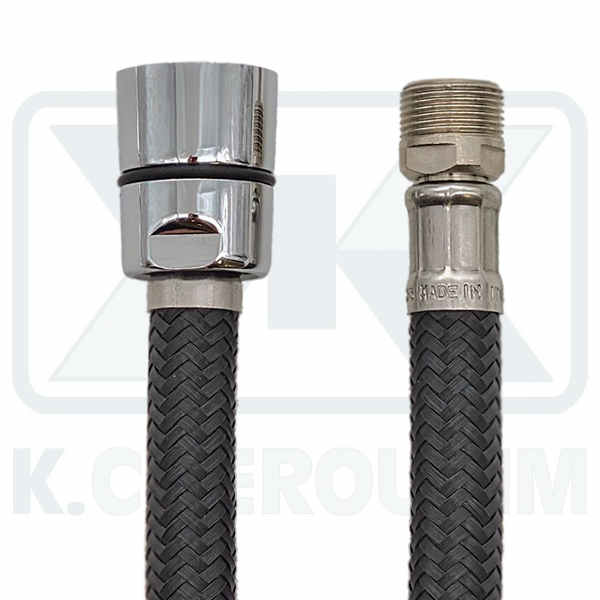 SPIRAL KITCHEN 150 cm 15X1 MALE ROTATION X 1/2″ WITH CONICAL NUT, NYLON BLACK 30 bar