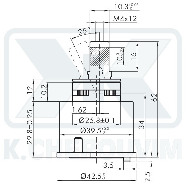 MECHANISM Κ42C – ? 42 WITH 1 SPILE WITHOUT DISTRIBUTOR CERAMIC FOR MIXING MIXER, LEVER 10X10