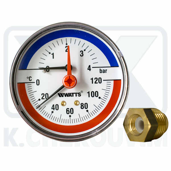 THERMOMANOMETER HORIZONTAL ? 80/4 bar +120°C, 1/4″ (BACK THREAD) WITH VALVE REPLACEMENT 1/2″