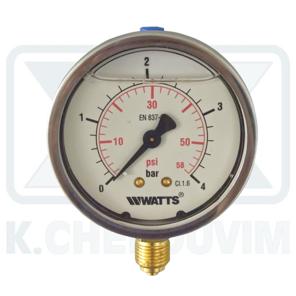 MANOMETER INOX-BRASS GLYCERIN VERTICAL ? 63/4 bar 1/4″ (DOWN THREAD)
