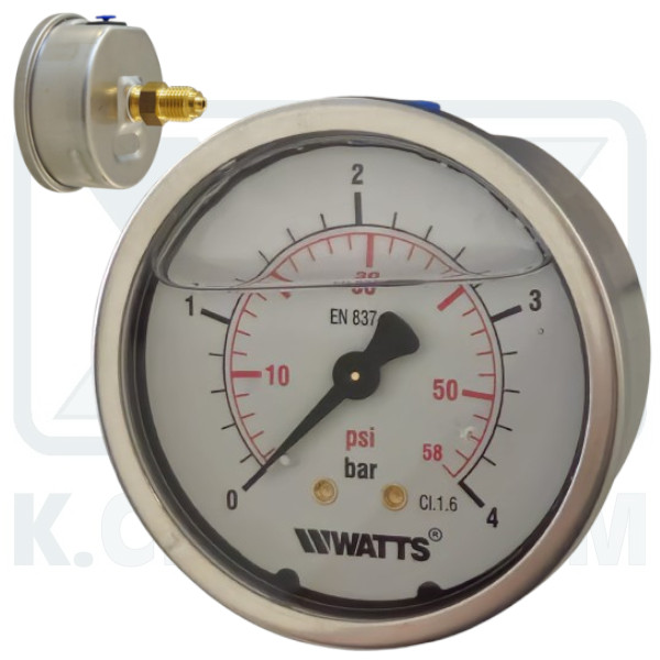 MANOMETER INOX-BRASS GLYCERIN HORIZONTAL ? 63/4 bar 1/4″ (BACK THREAD)