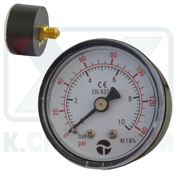 MANOMETER HORIZONTAL ? 40/10 bar 1/8″ (BACK THREAD) FOR FILTERS WATER