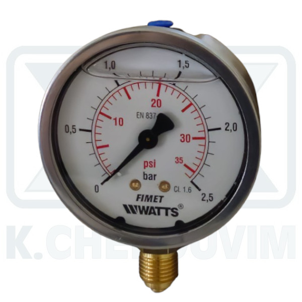 MANOMETER INOX-BRASS GLYCERIN VERTICAL ? 63/2,5 bar 1/4″ (DOWN THREAD)