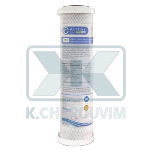 Αφαιρεί αποτελεσματικά την χλωραμίνη . Εξαιρετική αφαίρεση PFAS υπερφθοριωμένων πολυφθοριωμένων αλκυλιωμένων ουσιών . Αφαιρεί σε μέγιστο βαθμό τα οργανικά χημικά στοιχεία που πιθανόν να υπάρχουν στο πόσιμο νερό. Προσφέρει επίσης εξαιρετική βελτίωση της γεύσης και της οσμής του νερού. Αφαιρεί αποτελεσματικά ιζήματα και στερεά σωματίδια απο το νερό με ονομαστική διήθηση 5 micron. Το φίλτρο άνθρακα Matrikx CTO , που λειτουργούν με την τεχνολογία Greenblock®, κατασκευάζονται από άνθρακα 100% φλοιού καρύδας, ένα ανανεώσιμο και οικολογικά βιώσιμο υλικό.