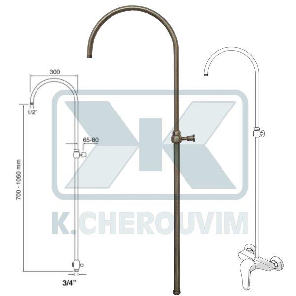 ΚΟΛΟΝΑ ARCO BRONZE ΜΕ 1 ΣΤΗΡΙΓΜΑ ΤΟΙΧΟΥ ΠΤΥΣΣΟΜΕΝΗ ΜΕ ΡΑΚΟΡ 3/4″ Χ 1/2″ ΑΡΣ.