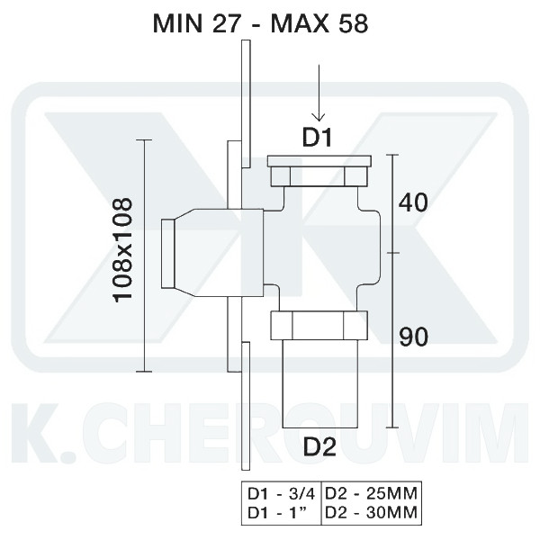 ΦΛΟΥΣΟΜΕΤΡΟ Ν.471-Α ΕΝΤΟΙΧΙΣΜΟΥ 1″ ΧΡΩΜΕ TREMOLADA (ΡΟΖΕΤΑ ABS 11Χ11 cm)