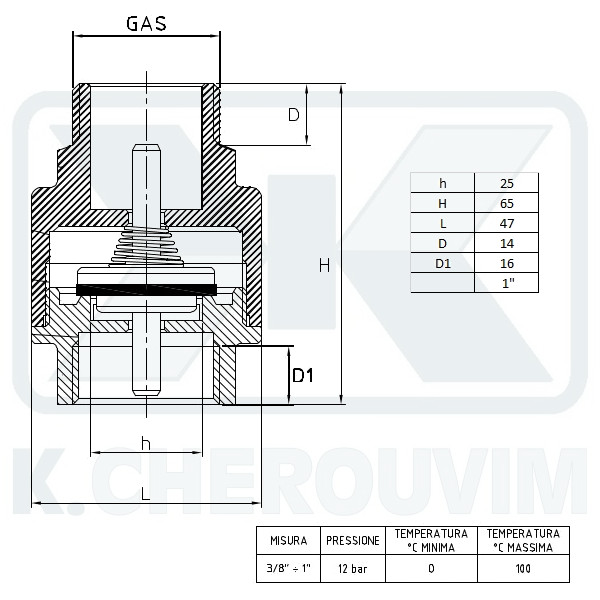 ΒΑΛΒΙΔΑ ΑΝΤΕΠΙΣΤΡΟΦΗΣ ΑΡΣ. ΘΗΛ. 1″ ΟΡΕΙΧΑΛΚΙΝΗ ΜΕ ΠΛΑΣΤΙΚΟ ΕΜΒΟΛΟ L50, 12 bar, ΘΕΡΜ. 0 +100 ˚C