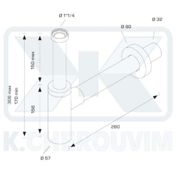 1"1/4 x Φ32 x L 280 mm