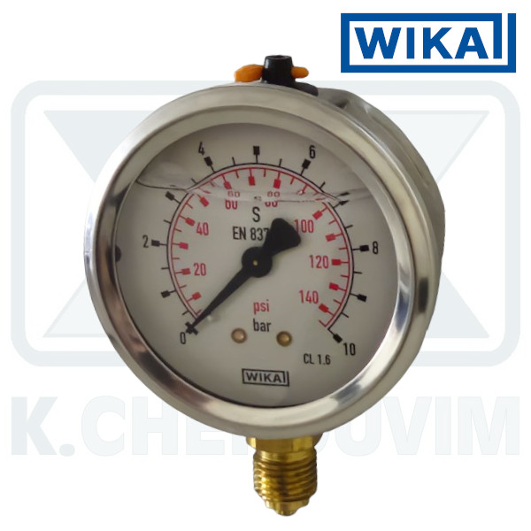 ΜΑΝΟΜΕΤΡΟ WIKA ΙΝΟΧ-ΟΡΕΙΧΑΛΚΙΝΟ ΓΛΥΚΕΡΙΝΗΣ ΚΑΘΕΤΟ Φ63/0+10 bar 1/4″ (ΚΑΤΩ ΣΠΕΙΡΩΜΑ) ΑΚΡΙΒΕΙΑ ±1,6%