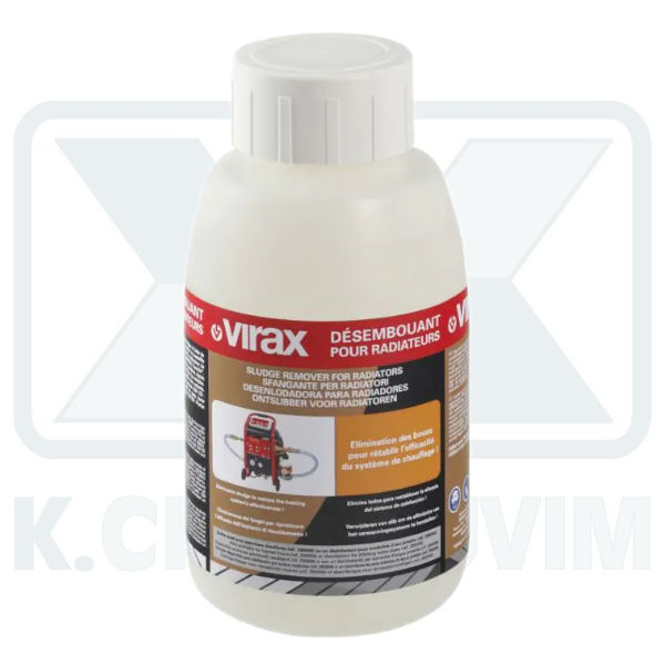 Καθαριστικό λάσπης VIRAFAL® για θερμαντικά σώματα: VIRAX 295055 μόνο για θερμαντικά σώματα. Καθιστά δυνατή την εξυγίανση και τον καθαρισμό της λάσπης και των ιζημάτων στα θερμαντικά σώματα. Συμβατό με όλα τα μέταλλα.