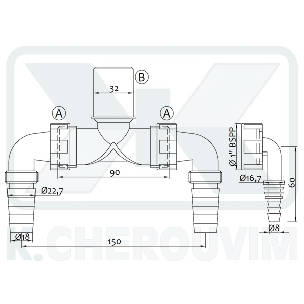 ΣΙΦΟΝΙ ΔΙΠΛΟ ΕΞΑΓΩΓΗΣ ΠΛΥΝΤΗΡΙΟΥ – ΣΤΕΓΝΩΤΗΡΙΟΥ ΜΕ ΓΩΝΙΑΚΟ ΡΑΚΟΡ 1’’ ΚΑΙ ΕΞΟΔΟ Φ24